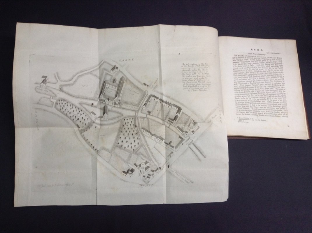 Volume I [only volume published] FIRST EDITION 4to. (approx. 27 x 22cm) hardback rebound in modern brown buckram, gilt. New endpapers. Starts with Title page. Pages unnumbered until Collections for the County of Sussex, 44, 47-66pp. and Collections for Berkshire, 4pp. Illustrated with 9 full-page engravings and one large folding engraving of Blackfriars in Canterbury (with small closed tear). One page mended with white tape. Pencil annotations to ffep and occasionally in text plus a couple of small ink words to title page (please see photos). Modern armorial bookplate to front pastedown. Occasional light foxing. Overall a GOOD+ COPY.