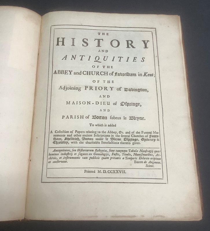 The History and Antiquities of the Abbey and Church of Faversham in Kent; of the Adjoining Priory of Davington and Maison-Dieu of Ospringe, and Parish of Bocton subtus le Bleyne + FUNERAL MONUMENTS IN THE CHURCH OF FAVERSHAM (2 Volumes bound as 1) To which is added a Collection of Papers relating to the Abbey, etc. and the Funeral Monuments and other ancient Inscriptions in the several Churches of Faversham, Shelwich, Bocton under Le Bleyne, Ospringe, Graveney & Throwley, with the Charitable Benefa