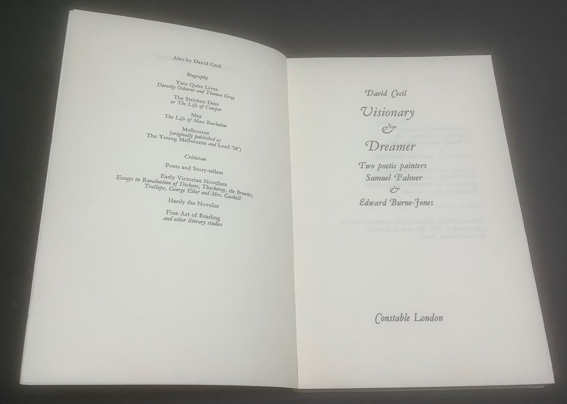 VISIONARY & DREAMER: Two Poetic Painters - Samuel Palmer & Edward Burne-Jones (Uncorrected Proof Copy)