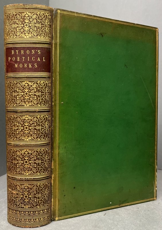 Copyright Edition. Large 8vo., in full green calf gilt, with raised bands and gilt decoration to spine, all edges marbled plus marbled endpapers; [viii] + 4 plates of facsimiles of Byron's handwriting +827pp, indexed, with engraved portrait frontis plus vignette to title page. Ink gift inscription dated 1857 to early blank. Foxing to endpapers, and to the first and last few pages, a few small marks to boards, edges a little rubbed. A Good+ copy overall.