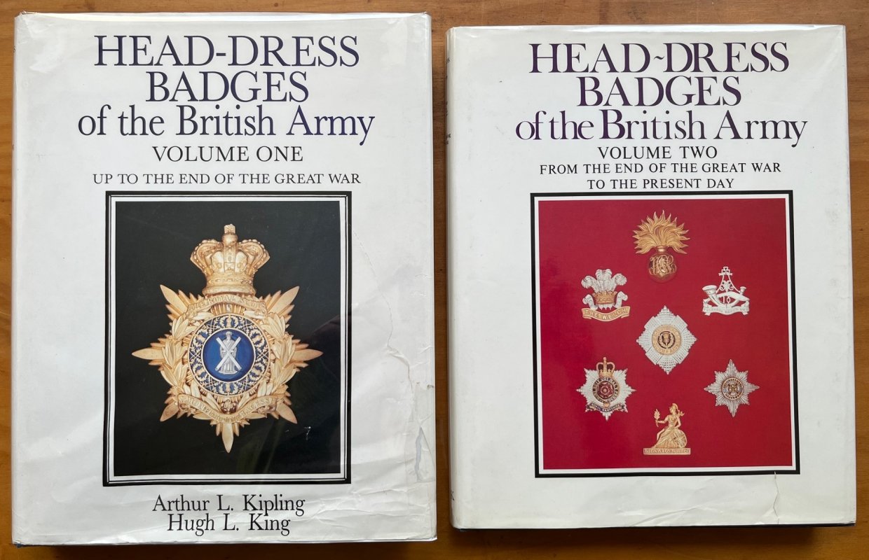 HEAD-DRESS BADGES OF THE BRITISH ARMY (2 Volumes, Complete) Volume I: Up to the End of the Great War. Volume II: From the End of the Great War to the Present Day.