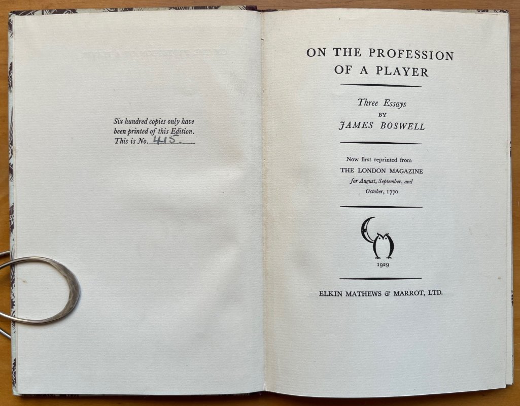 ON THE PROFESSION OF A PLAYER: Three Essays Noe first reprinted from The London Magazine for August, September, and October, 1770