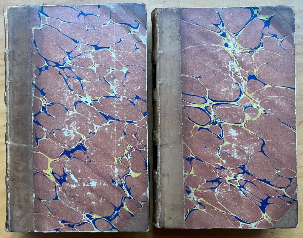 FIRST THUS 2 Volumes, complete. 8vo. contemporary half tan calf with raised bands, decorative gilt, dark brown title and Volume labels, gilt, with marbled boards. All edges marbled. Both volumes with engraved title pages and portrait frontispieces plus Volume I has b/w engraved plates within the text. Both volumes have ink signature and date (1831) to title page over erased previous inscription which has left paper rather thin. Slight worming to first few pages of Volume I. Some light foxing, occasionally heavier. Title label edges of Volume I a little chipped and some light rubbing and scratches to spines. Marbled boards rather rubbed. Overall a VERY GOOD, HANDSOME SET.