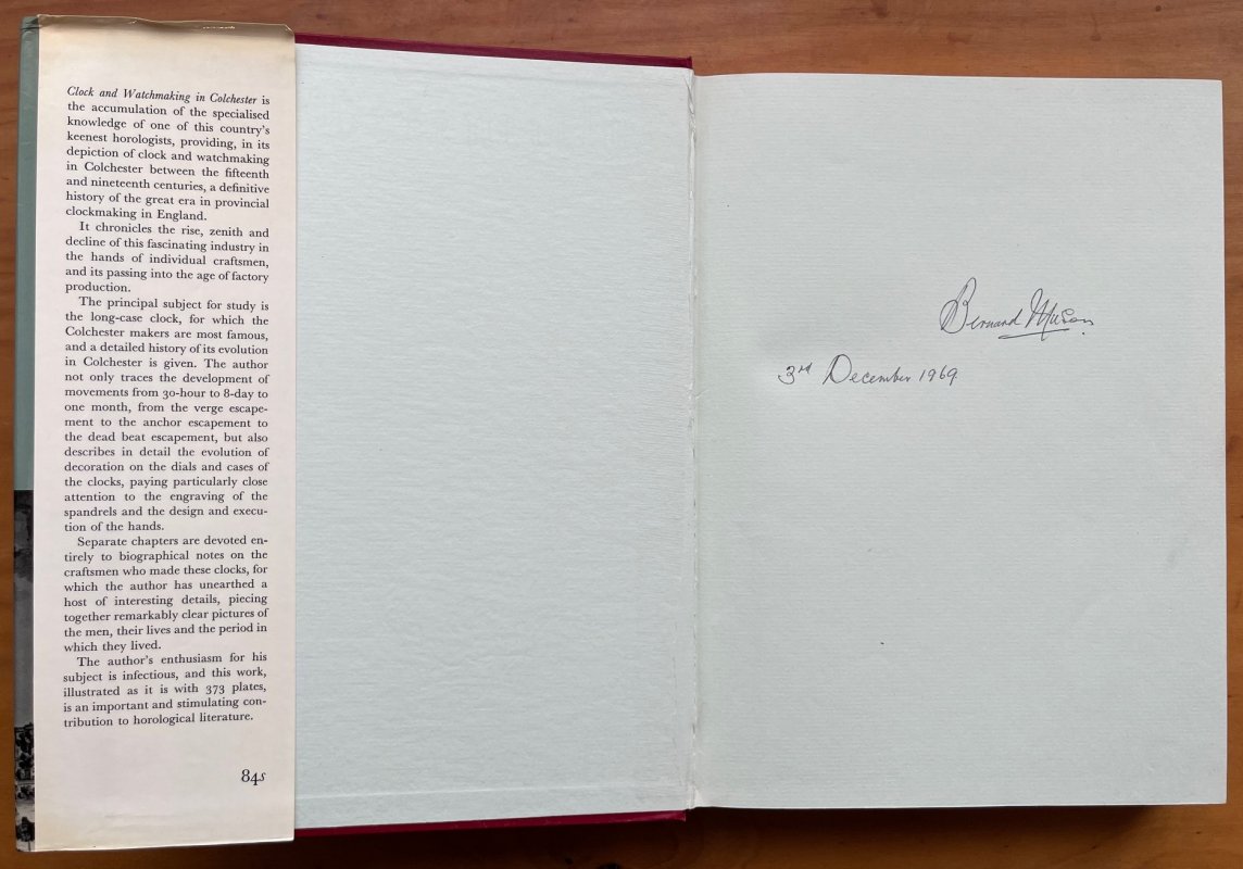 CLOCK AND WATCHMAKING IN COLCHESTER: A History of Provincial Clockmaking from the Fifteenth to the Nineteenth Centuries in the Oldest Recorded Town in Great Britain (sIGNED cOPY)