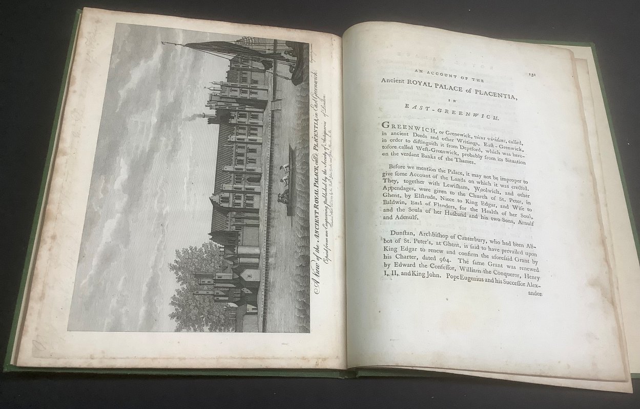 FIRST EDITION 4to. (approx. 27 x 21cm) green cloth hardback, black morocco title label, gilt. 142pp., illustrated with 3 engraved plates, lacking folding frontispiece. Occasional pencil underlings in text and notes across the top of the plate showing a View of the Ancient Royal Palace (not affecting image). Occasional light foxing. Spine very slightly faded with light edgewear. Overall a GOOD+ COPY.