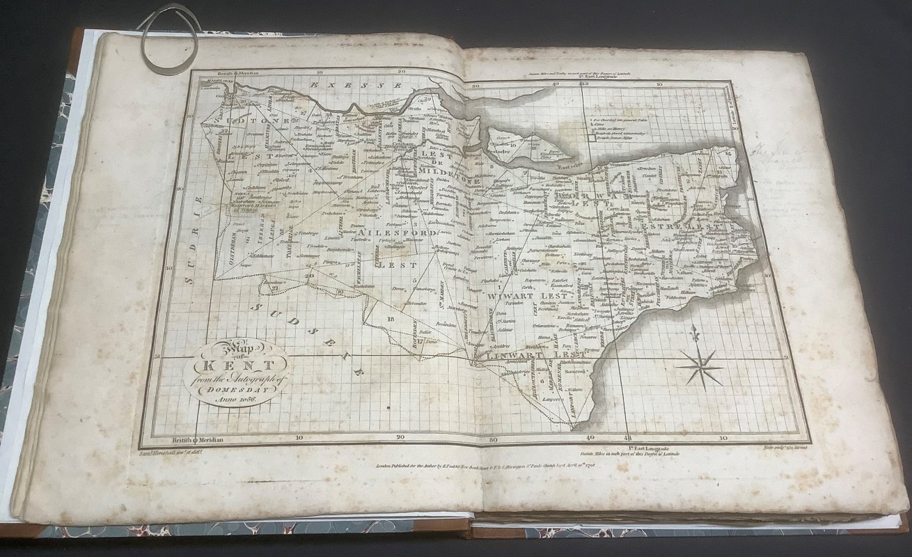 FIRST EDITION THUS 4to. hardback in modern half calf with marbled boards and gilt rules. Five raised bands to spine with two red labels, gilt. 268pp., with a double-page map of Kent in 1086. Pencil name to top of title page and annotations and underlinings to text and map. Two old newspaper cuttings (dated 1813 and 1823) affixed to rear pastedown as well as an Ex. Library bookplate. Occasional light foxing, heavier to map, prelims and foredge. Rusty pin affixed to p.47 which also has slight loss to top edge. Small scratch to spine else a VERY GOOD, BRIGHT COPY.