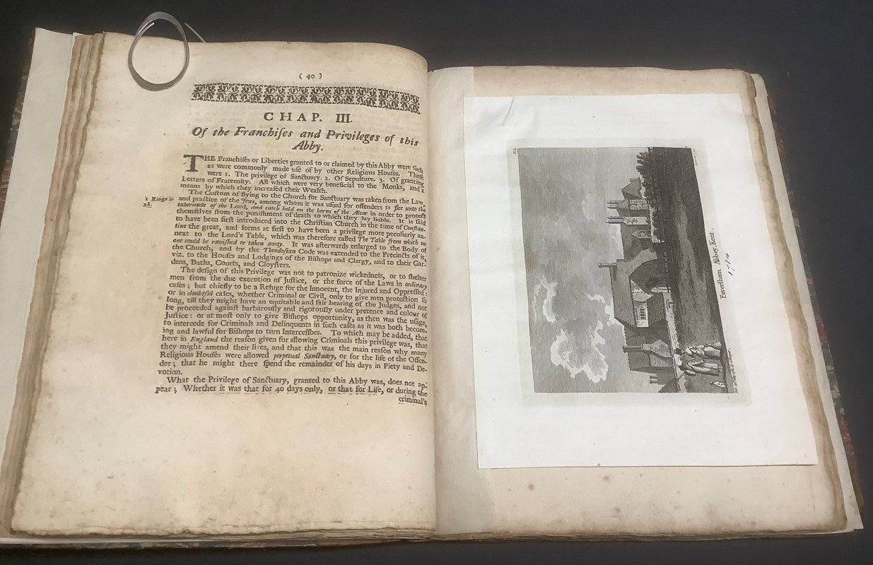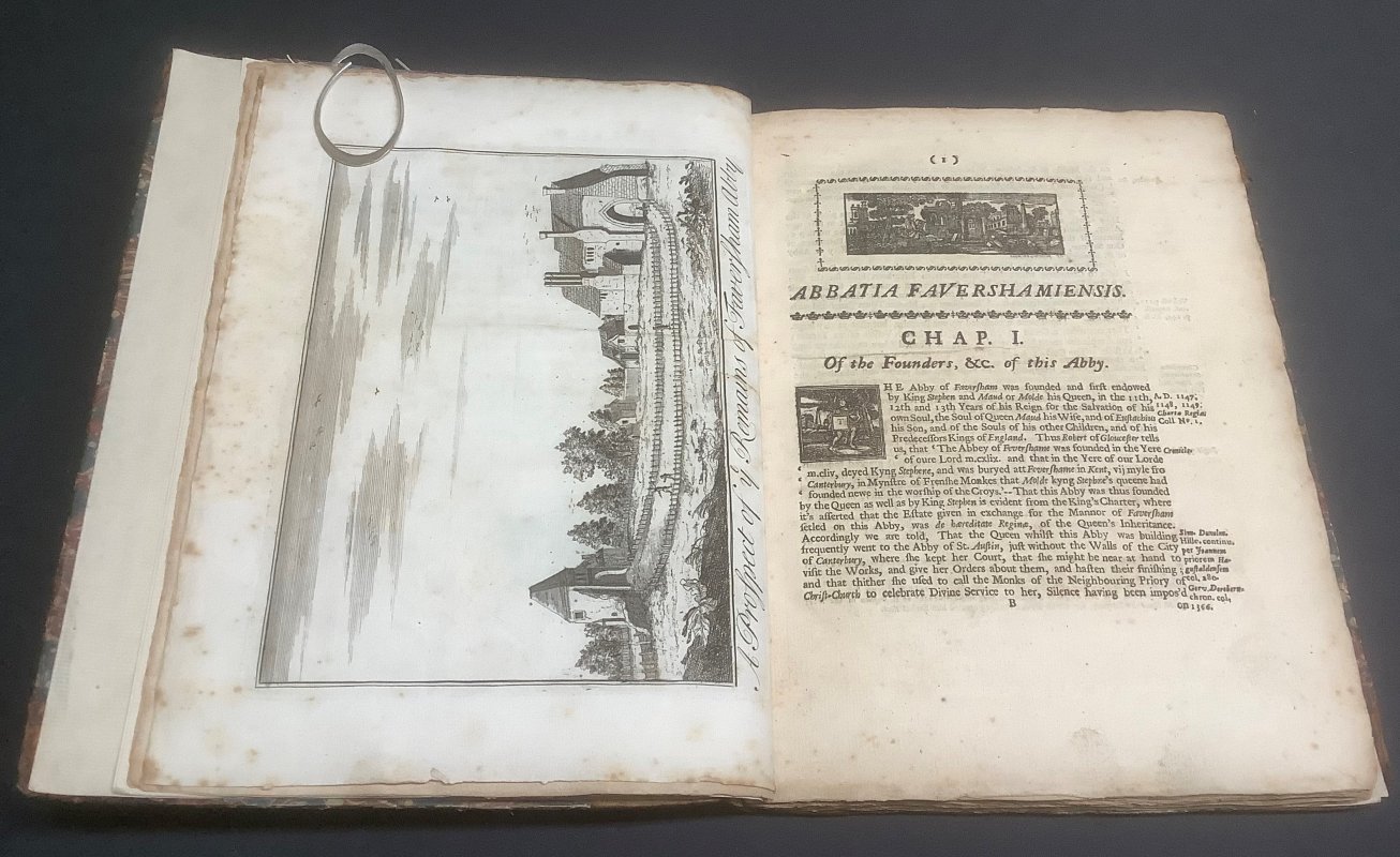 The History and Antiquities of the Abbey and Church of Faversham in Kent; of the Adjoining Priory of Davington and Maison-Dieu of Ospringe, and Parish of Bocton subtus le Bleyne + FUNERAL MONUMENTS IN THE CHURCH OF FAVERSHAM (2 Volumes bound as 1 - Extra To which is added a Collection of Papers relating to the Abbey, etc. and the Funeral Monuments and other ancient Inscriptions in the several Churches of Faversham, Shelwich, Bocton under Le Bleyne, Ospringe, Graveney & Throwley, with the Charitable Benefa