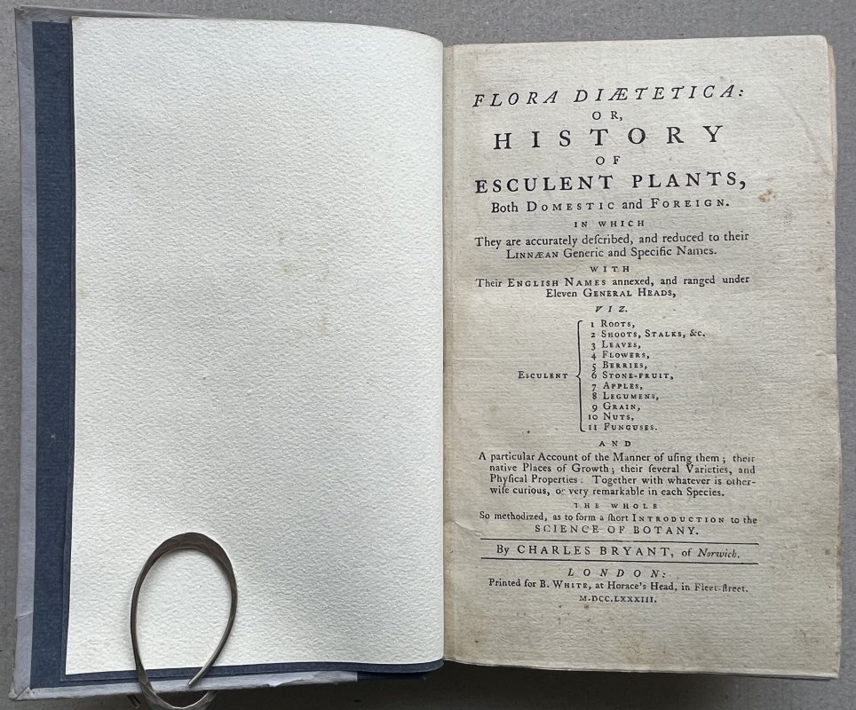 Flora diaetetica: or, history of esculent plants, both domestic and foreign. In which they are accurately described, and reduced to their Linnaean Generic and Specific Names. With Their English Names annexed, and ranged under Eleven General Heads, Viz. Esculent, 1 Roots, 2 Shoots, Stalks, etc. 3. Leaves, 4 Flowers, 5 Berries, 6 St