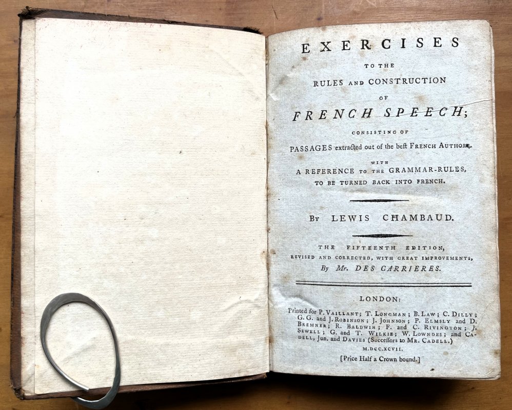 EXERCISES TO THE RULES and CONSTRUCTION OF FRENCH SPEECH; Consisting of Passages Extracted out of the Best French Authors, with a Reference to Grammar Rules, to be Turned Back into French. The Fifteenth Edition, Revised and Corrected, with Great Improvements, by Mr. Des Carrieres.
