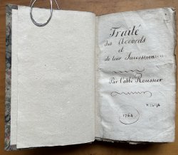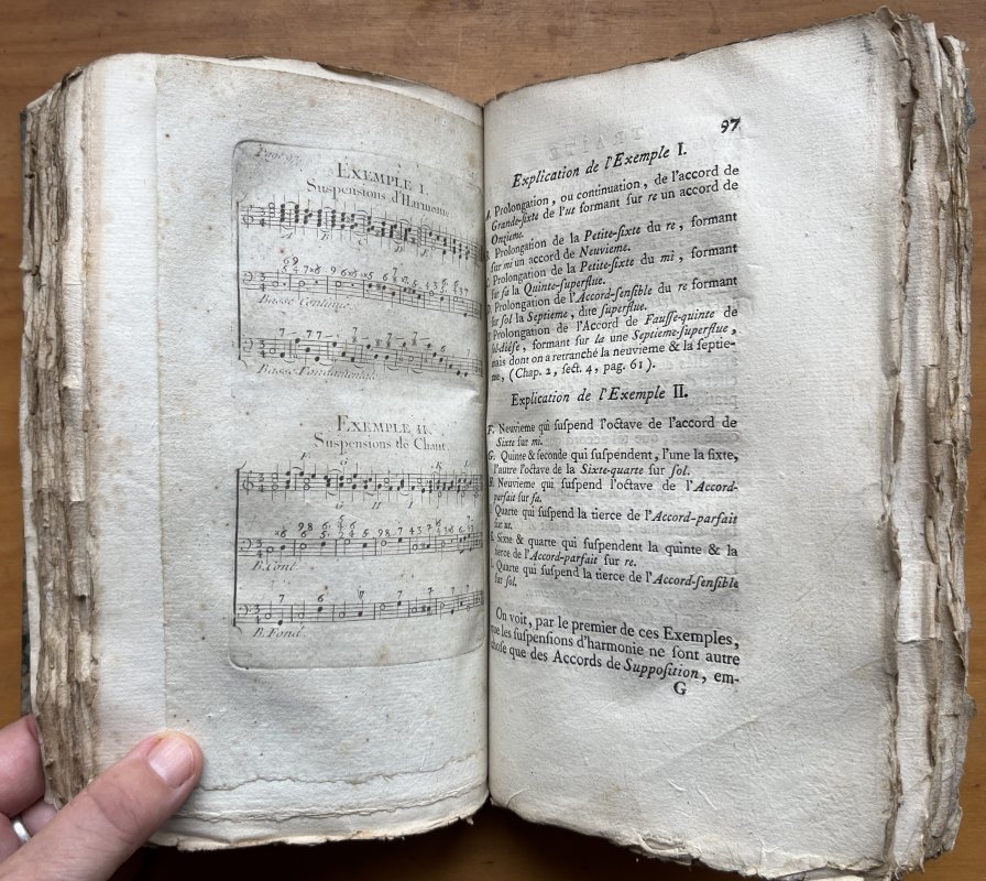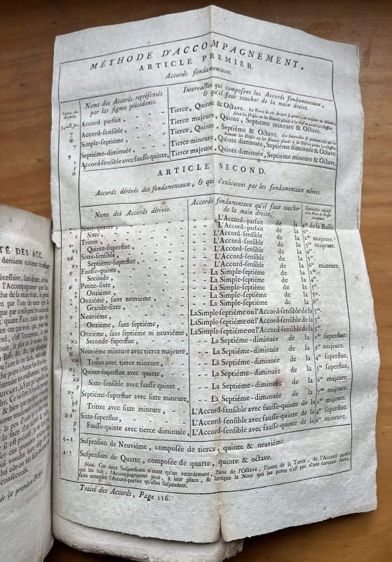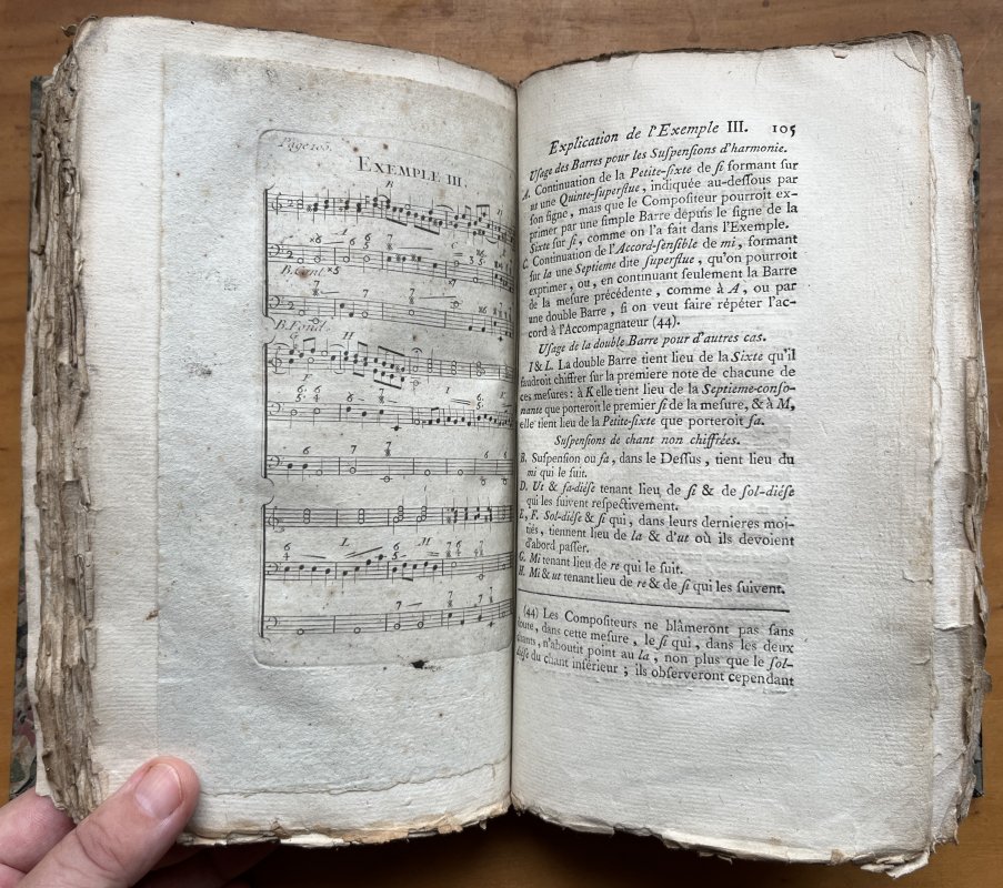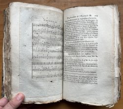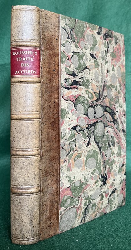 8vo. hardback rebound in 18th century style tan calf with raised bands, red title label, gilt to spine and marbled boards. New endpapers. LACKING TITLE PAGE BUT WITH OLD HAND-WRITTEN TITLE PAGE BOUND-IN. TEXT IN FRENCH. xxxii, 192pp. with large folding Table and engraved musical examples bound-in as called for. Old ink inscriptions to blanks at end and small modern bookplate to front pastedown. All edges ragged and untrimmed. Occasional light foxing. A Good+ Copy.