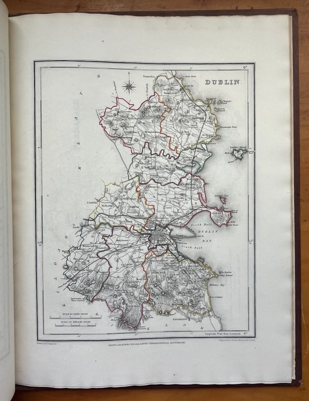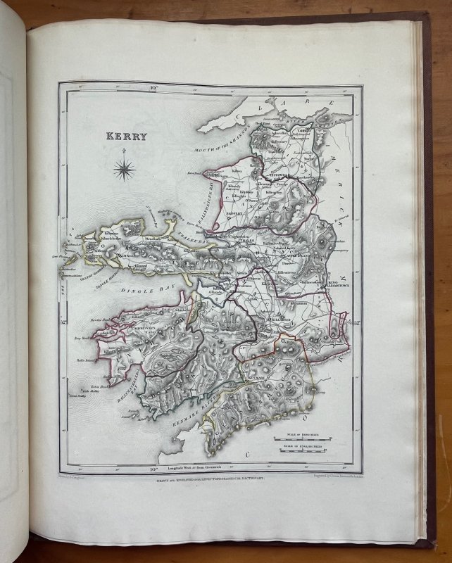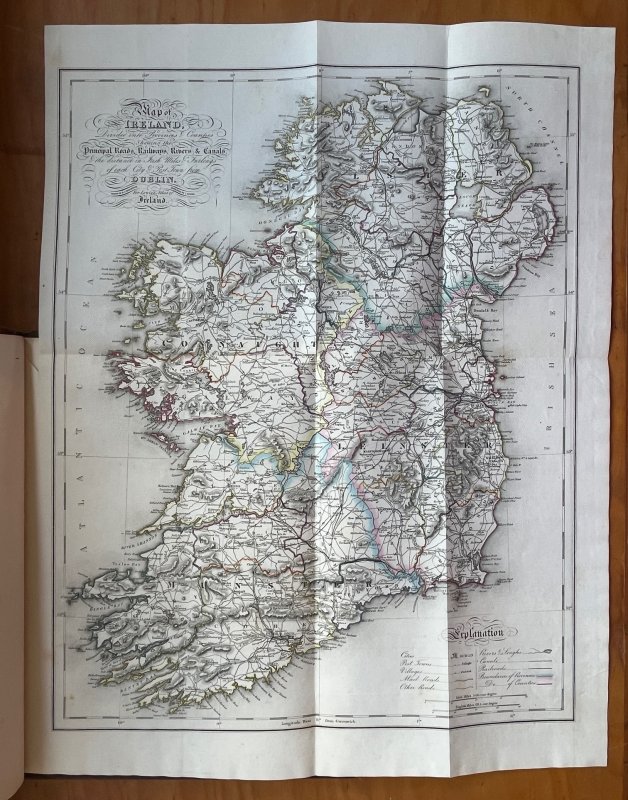 Second Edition. 4to. maroon cloth hardback with gilt titles to spine and blind-stamped decorative borders to boards. Decorative engraved calligraphic title page with vignette illustration, decorative calligraphic Contents page, large folding Map of Ireland, divided into Provinces and Counties with hand-coloured outlines to borders, plus 32 Maps of Counties, also with hand-coloured outlines. Modern bookplate to front pastedown along with rubber-stamped signatures to front and rear pastedowns and ffep. Occasional light foxing, mainly to prelims. The maps in beautifully clean and crisp condition. Some fading to maroon cloth spine and edges of boards, slight wear to top and base of spine and corners, and very slight rubbing to boards (please see photos). A VERY GOOD COPY.