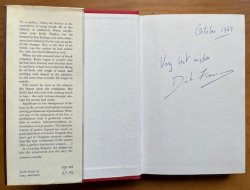FIRST EDITION, Signed by AuthoR. 8vo. red cloth hardback, gilt, win unclipped dust jacket. 224pp. Author's ink inscription to ffep reads 'October 1969 Very best wishes Dick Francis'. No other markings or inscriptions. Light foxing to top and foredges. Slight fading to dust jacket spine, a few small chips to edges and small scuff to front cover (please see photo). A VERY GOOD COPY in Good+ Dust Jacket.