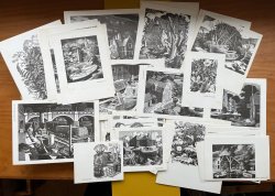 SIGNED, limited Edition No. 69 of 250 copies 4to. hardback in quarter tan calf, gilt, and marbled boards. 48pp. with b/w wood-engraved illustrations and 61 loose sheets with 67 b/w wood-engravings (with captions) in pocket at end. Author's pencil signature to Limitations page. No other markings or inscriptions. Slight foxing to prelims and to margins of a few prints. Light rubbing, soiling and wear to spine. Light rubbing to marbled board edges. A VERY GOOD COPY.