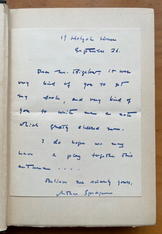 FIRST EDITION 8vo. dark green cloth hardback, gilt, no dust jacket. t.e.g. 299pp., Indexed, illustrated with b/w plates. Letter, handwritten and signed by the Author and dated September 1926, concerning a fan letter for this book tipped-in to ffep. Faint sign of removal of a bookplate to front pastedown. Very slight wear to corners of spine, else a VERY GOOD COPY.