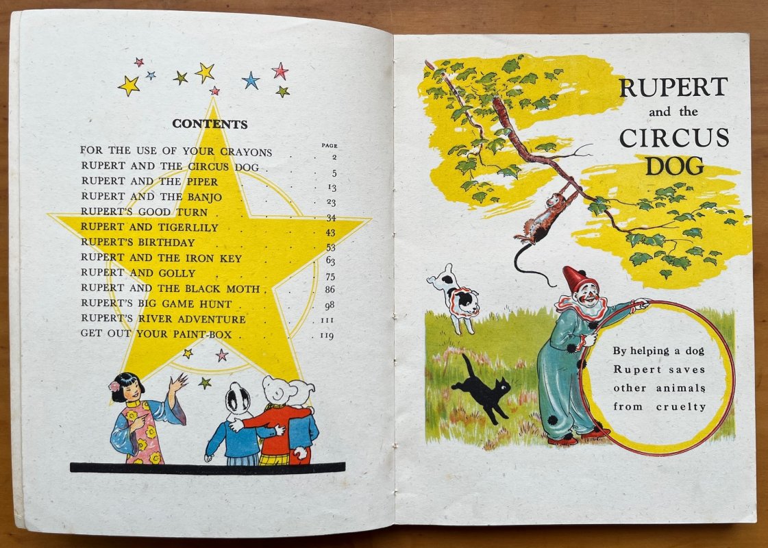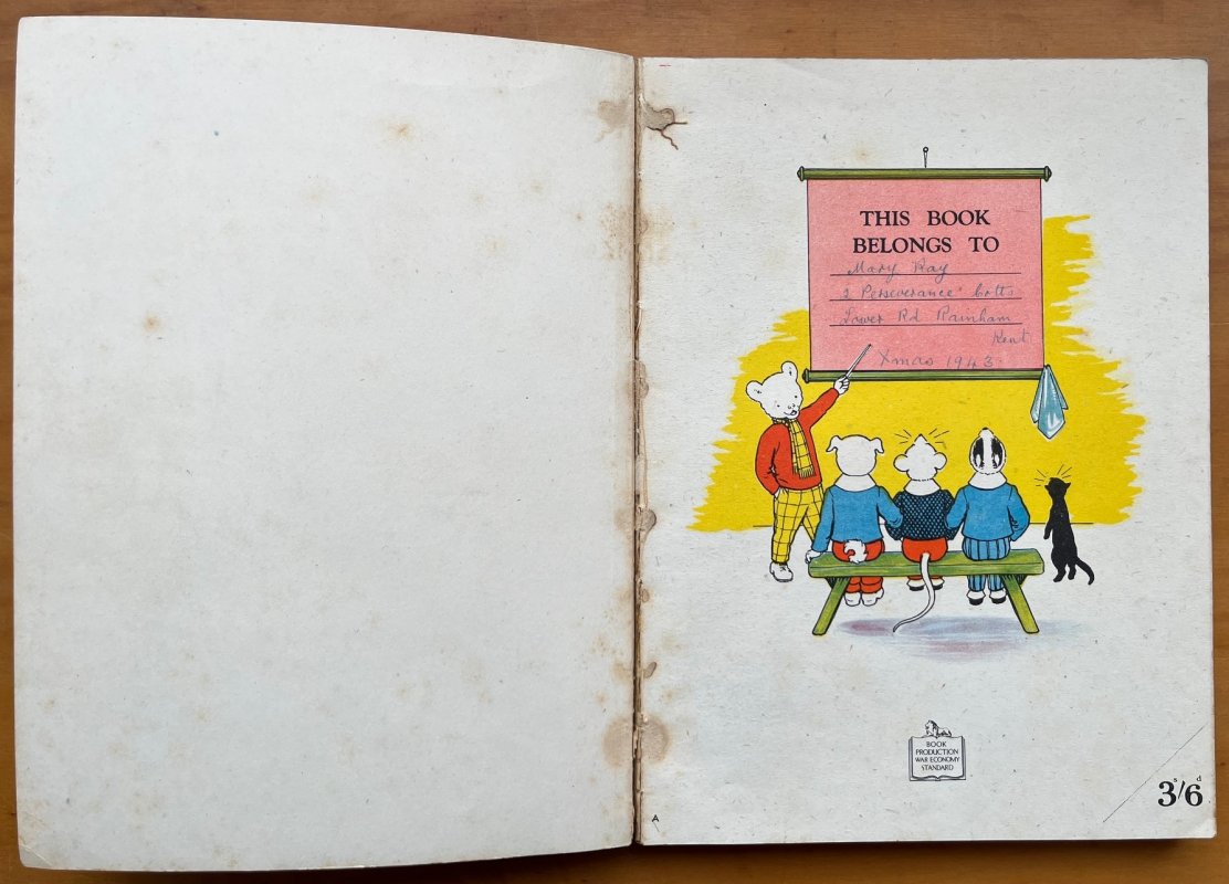 FIRST EDITION Small 4to. softback with illustrated card covers. 120pp. profusely illustrated in colour throughout. Neat gift inscription, dated Xmas 1943, to This Book Belongs to page. Light foxing to prelims, foredge and covers. Slight damage to front inner hinge where binding glue has seeped out a little, causing small areas of the inside front cover to stick to the first page (please see photos). Slight rubbing to all edges of spine with small splits to base of spine (please see photos). A VERY GOOD, BRIGHT COPY.
