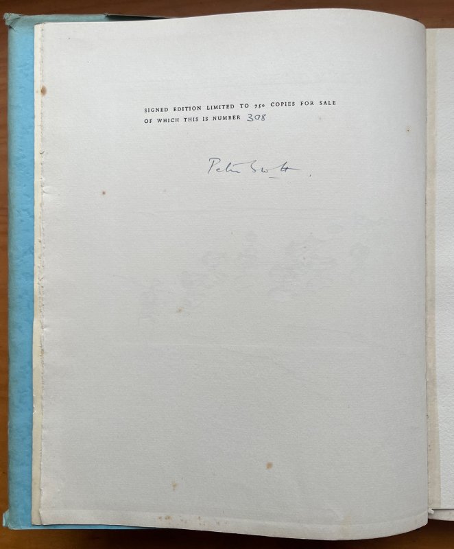 SIGNED, LIMITED EDITION No. 308 of 750 copies. 4to. hardback in quarter dark brown buckram, gilt, and tan cloth boards, in unclipped dust jacket. t.e.g. Illustrated endpapers. 138pp., profusely illustrated with 16 tissue-guarded colour plates, including a self-portrait as frontispiece, 48 b/w plates and b/w line drawings within the text. Signed by the Author in blue ink to Limitations page. No other markings or inscriptions. Occasional light foxing, heavy to prelims and untrimmed foredge. Cloth covers damp-stained around edges. Dust jacket rather edgeworn with closed tears, creases and small areas of loss to edges. Some tanning to spine (please see photos). A Good+ Copy in Good Dust Jacket.