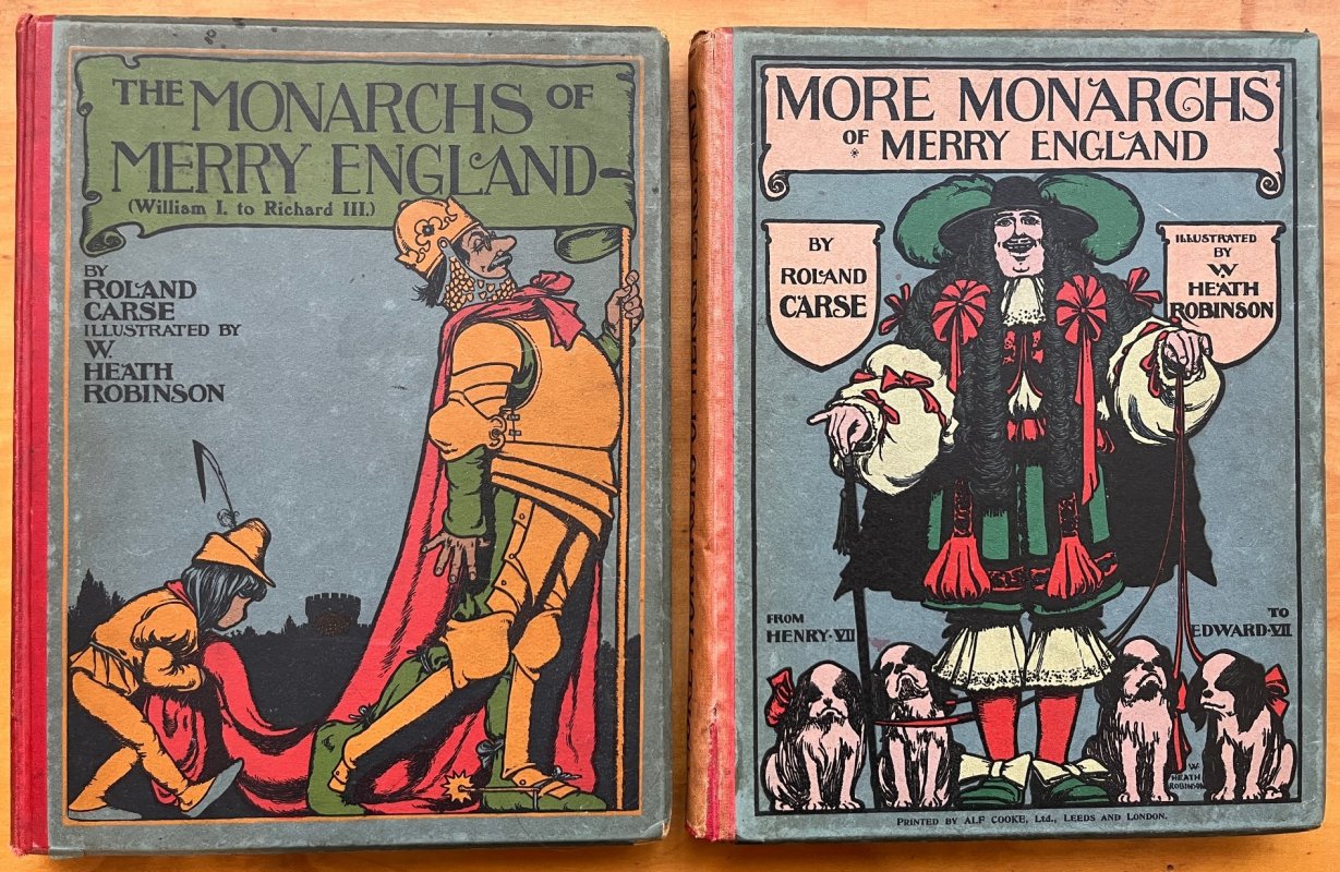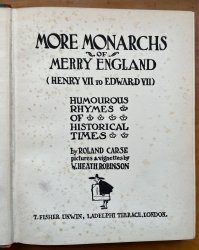 THE MONARCHS OF MERRY ENGLAND (William I to Richard III) and MORE MONARCHS OF MERRY ENGLAND (Henry VII to Edward VII) (4 Volumes in 2) Humourous Rhymes of Historical Times. Illustrated by W. Heath Robinson