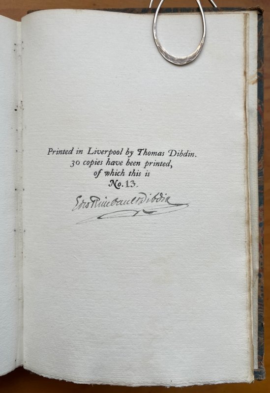 Published by Privately Printed by Thomas Dibdin, the author's son in Liverpool 1937