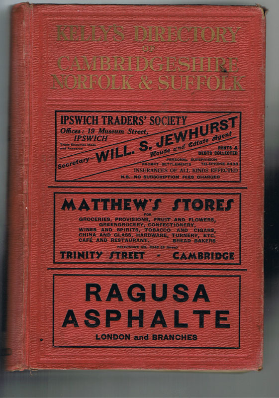 KELLY'S DIRECTORY OF THE COUNTIES OF CAMBRIDGE, NORFOLK and SUFFOLK 1933.